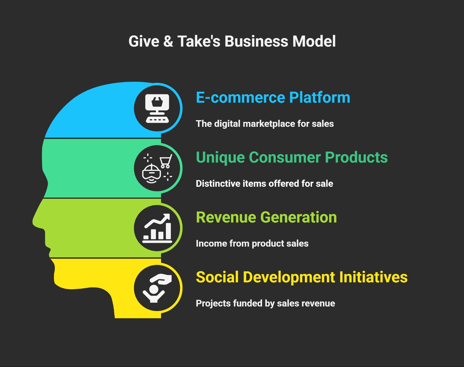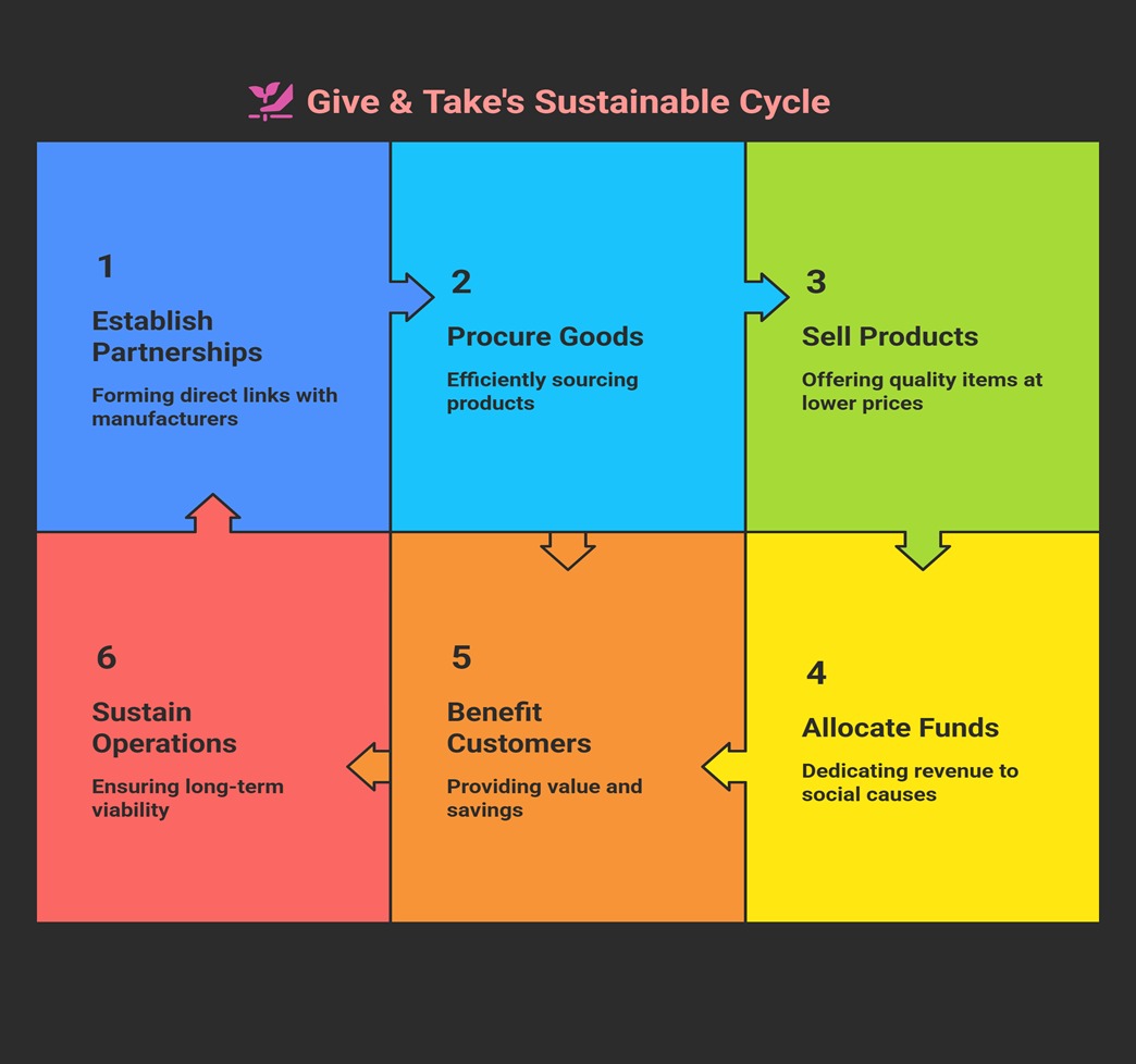 - Give & Take → Sustains its mission of social good.