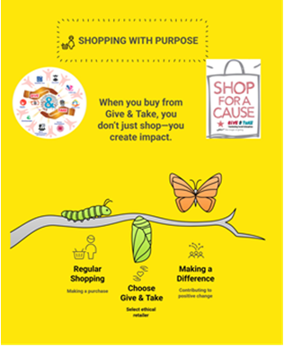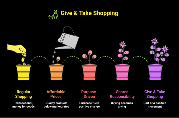 At Give & Take, every transaction is a step toward transformation—turning everyday shopping into an act of giving.