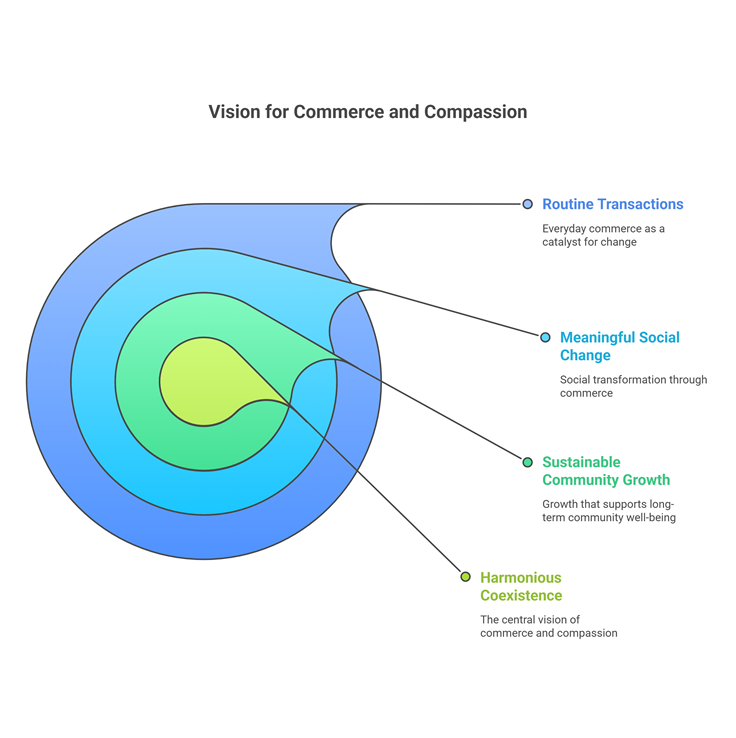To create a world where commerce and compassion go hand in hand, transforming everyday purchases into opportunities for sustainable community development and social impact.