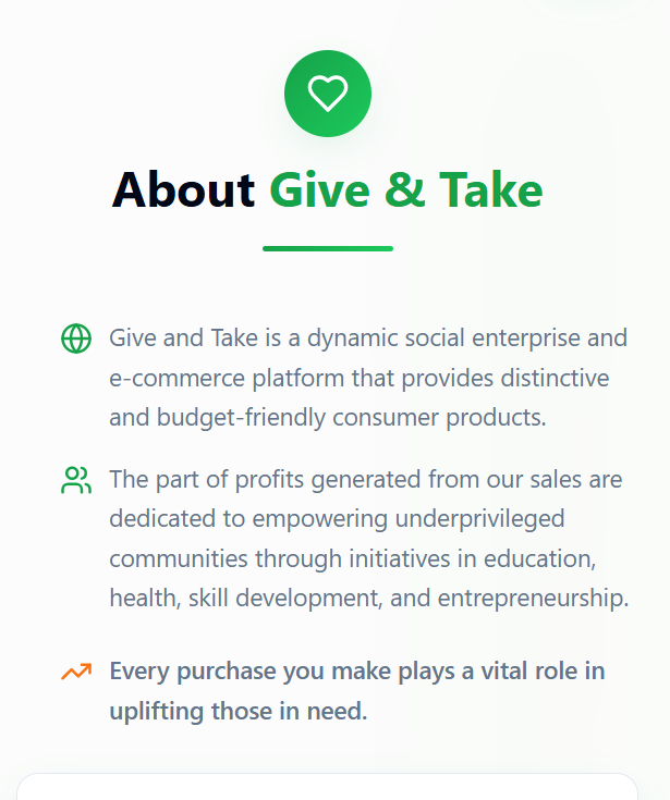 Ecommerce Fundraising Platform Initiative by Give & Take Fundraising Social Enterprises. Empowers Buyers to Explore the power of Buying as a BUYER cum Giver & while Taker is the Needy community around BUYERS they're in NEED of Giver's support.